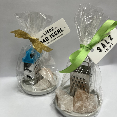 Das Sortiment unserer Bad Ischl Mitbringsel umfasst u.a. praktische Trinkflaschen mit dem Logo der Katrin Seilbahn, scharfe Salzreiben für einen Salzstein, der mit unserem Bad Ischler Salz Ihren Speisen das gewisse Etwas verleiht und unsere Häferl mit "echten Ischler - Sprüchen", was natürlich alles großartige Geschenkideen sind. Hierzu haben wir 2022 aufgerufen und über 1000 Einsendungen Ihrer Lieblingssprüche erhalten. Die besten drei druckten wir auf unsere Häferl und prämierten die Gewinner.